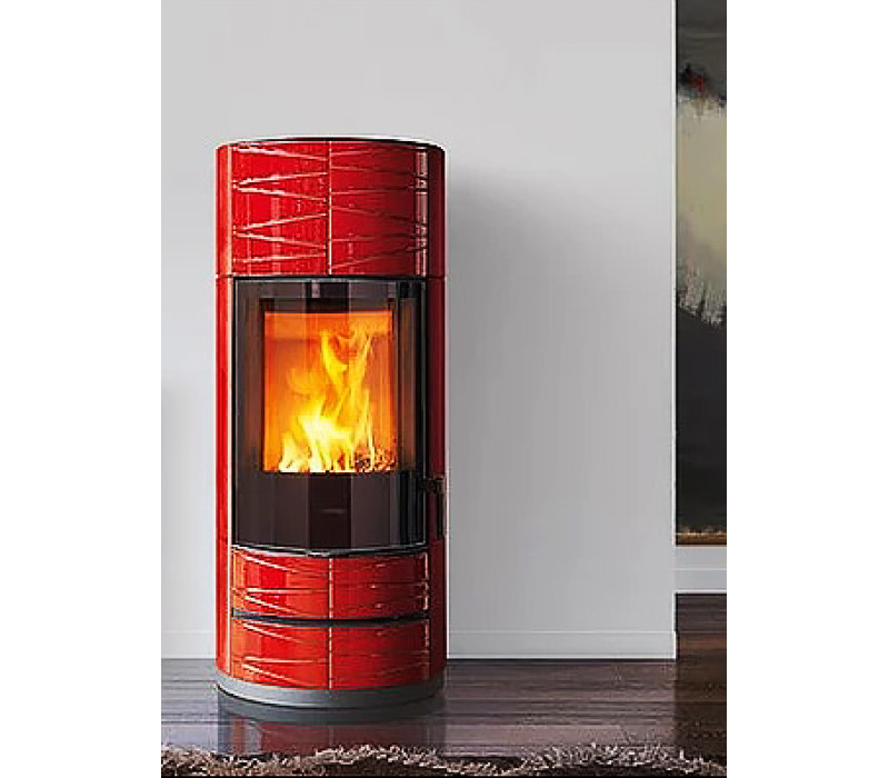 Дров'яній камінофен Piazzetta ROUND M в обробці з майоліки, з природною конвекцією і променистим обігрівом для приміщень до 215 м3.