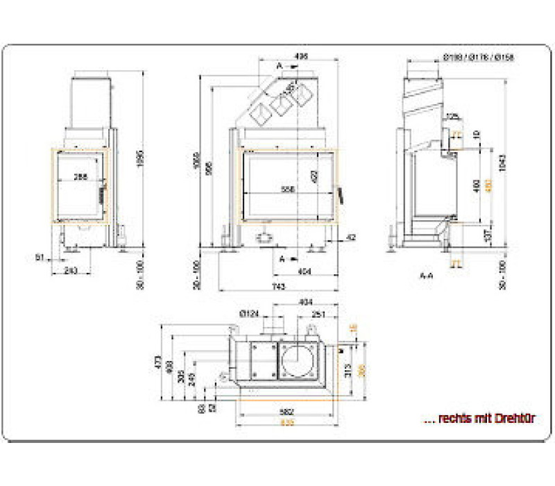 - открывание дверцы: оснащена системой подъема двери слева, что позволяет удобно управлять подачей воздуха и упрощает доступ к огню. Механизм подъемной дверцы обеспечивает легкое открытие, предотвращая распространение дыма в помещение;