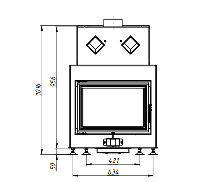 Изнутри двери установлен специальный молдинг из нержавеющей стали. Это эстетическое решение, с которым камин выглядит выразительно и завершенно. Эстетика не является единственной функцией такого молдинга: благодаря хорошему экранированию, дверной профиль меньше нагревается, а жар, случайно рассыпающийся за пределы топки, скатывается обратно.